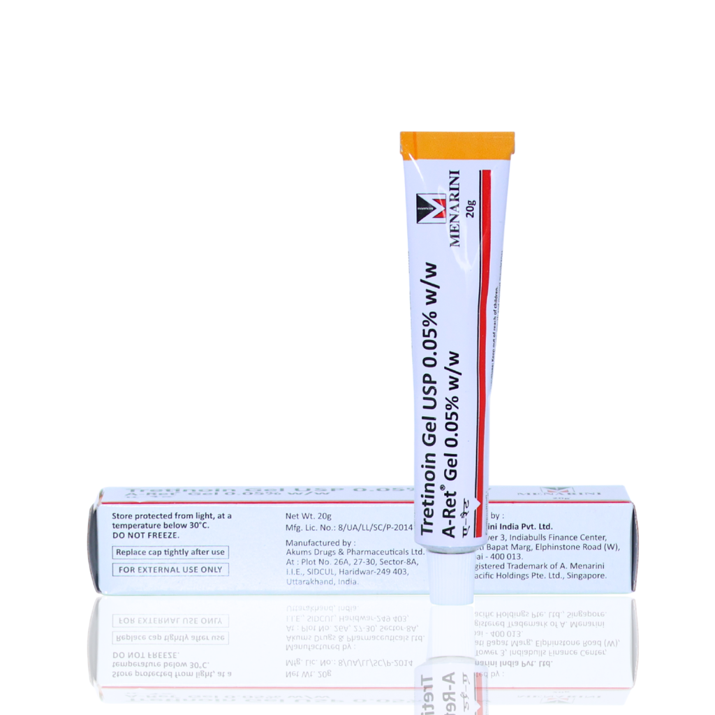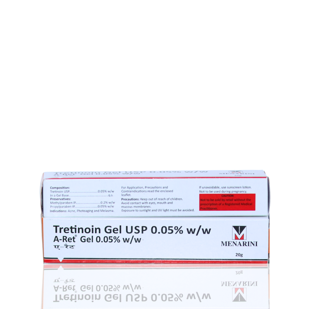 A-Ret 0.05% Gel is a prescription-strength topical treatment containing 0.05% Retinoic Acid (Tretinoin), commonly used for acne management, hyperpigmentation, and anti-aging purposes. It works by promoting skin cell turnover, unclogging pores, and reducing excess oil, helping prevent acne formation and fading dark spots.