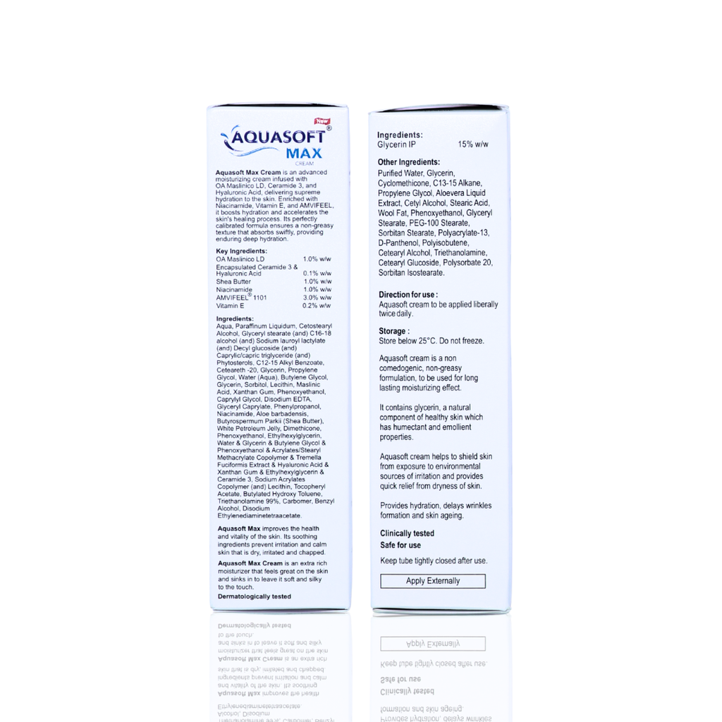 Apply Aquasoft Max Intense Moisturising Cream generously to clean, dry skin. Massage gently until fully absorbed. Use 1–2 times daily or as recommended by a dermatologist.