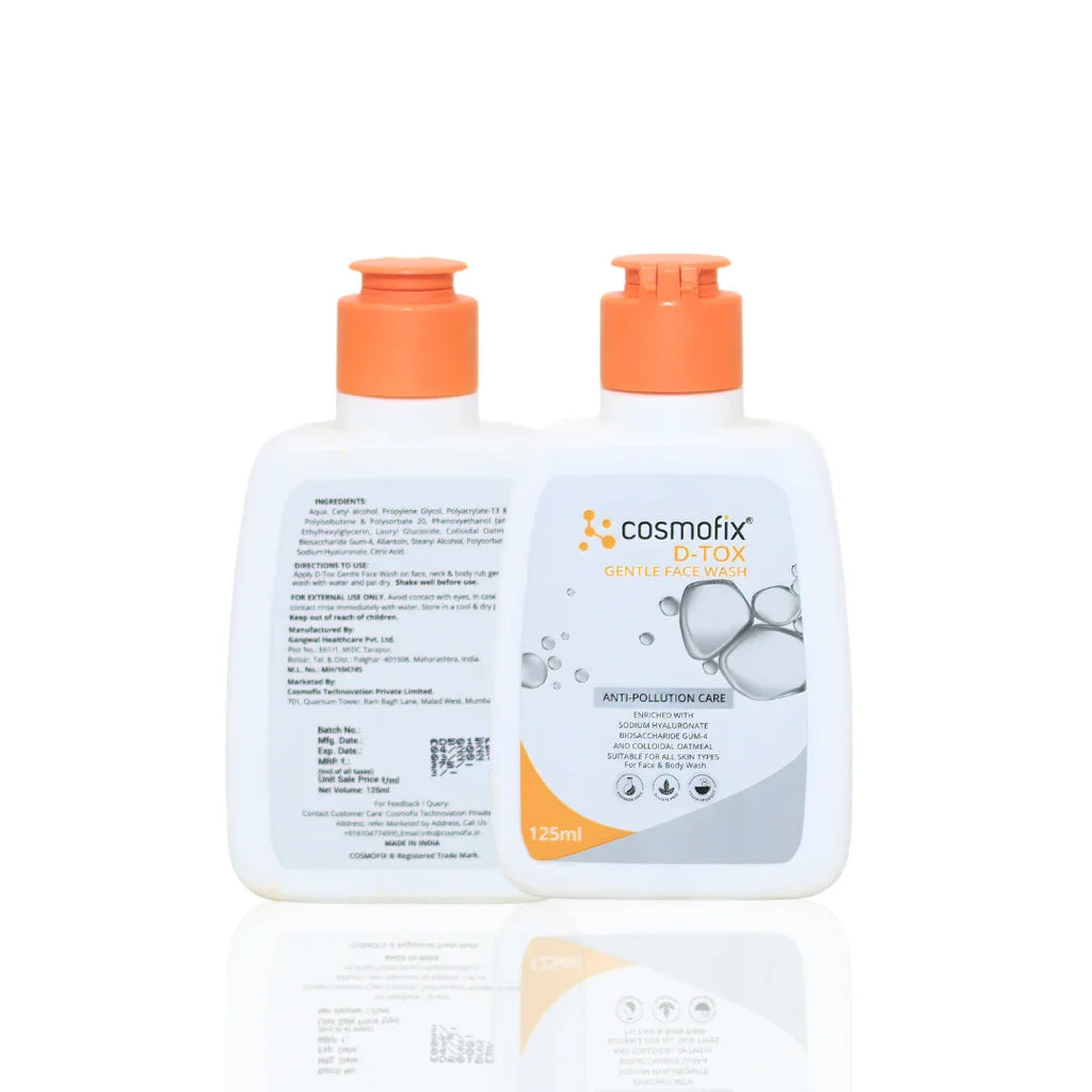 COSMOFIX D-TOX Gentle Face Wash is a mild yet effective daily cleanser designed to remove dirt, excess oil, pollution, and impurities without disturbing the skin’s natural moisture balance. Its gentle, soap-free formula helps detoxify the skin while maintaining hydration, making it ideal for everyday skincare routines.