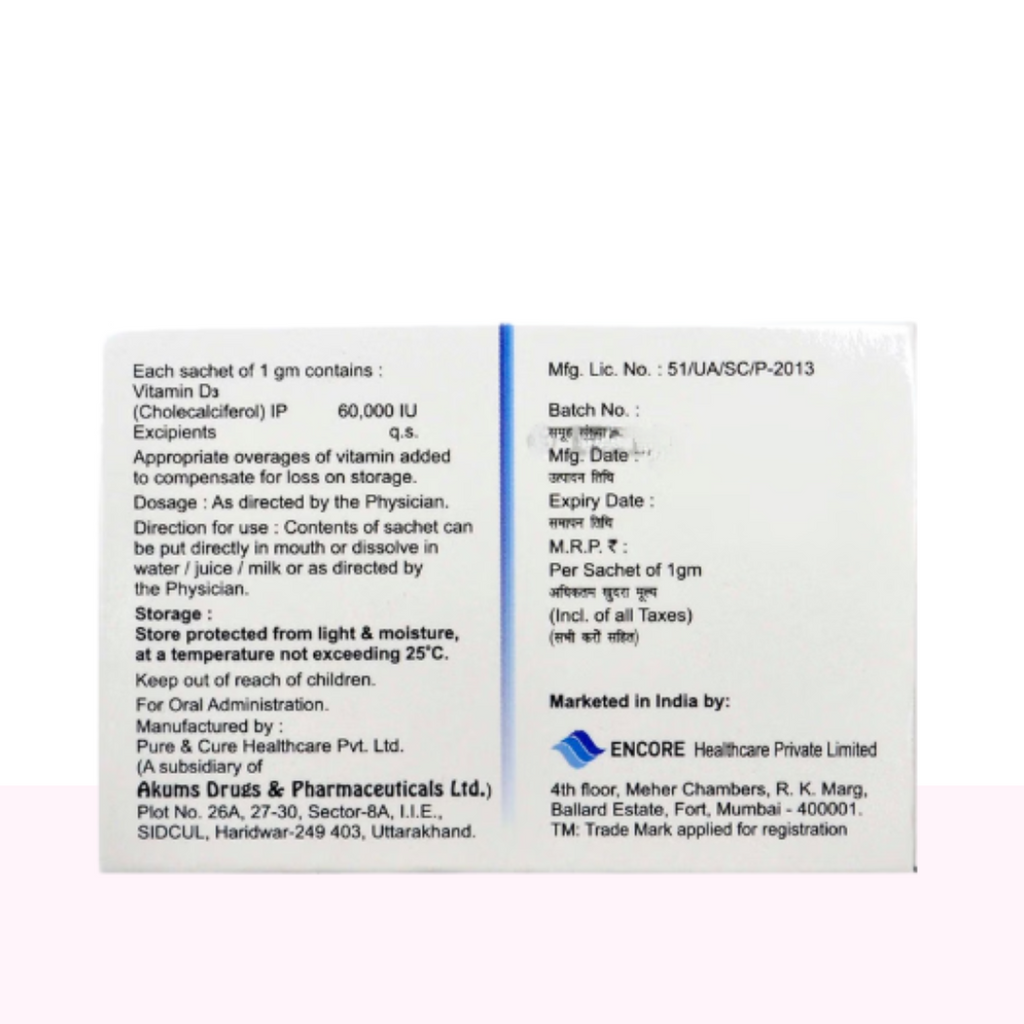 D Wik 60K Tablet is a powerful vitamin D supplement designed to help maintain healthy bones, teeth, and immune function. With a high-potency 60,000 IU dose, it ensures your body gets the essential vitamin D it needs, especially if you have limited sun exposure or dietary intake. This tablet supports calcium absorption, promotes bone strength, and helps prevent vitamin D deficiency-related fatigue and weakness.