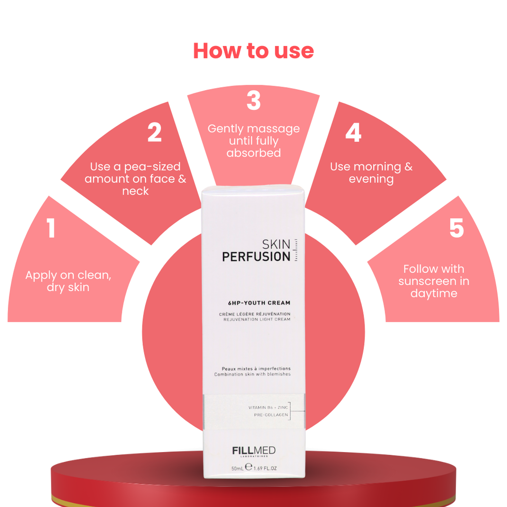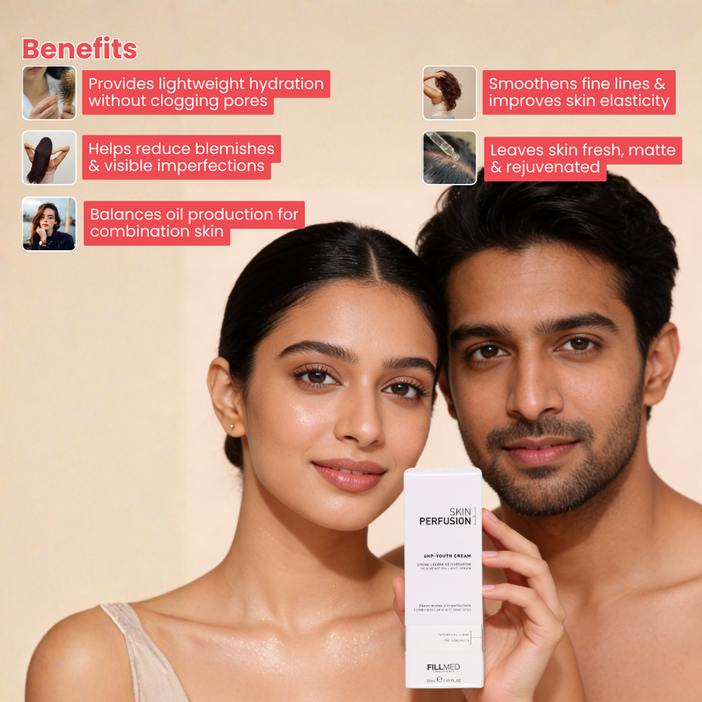 Fillmed Skin Perfusion 6HP Youth Cream is an advanced anti-ageing formulation designed to help improve skin firmness, smooth fine lines, and enhance overall radiance. Developed with high-performance ingredients, it supports skin hydration and helps maintain a youthful appearance.