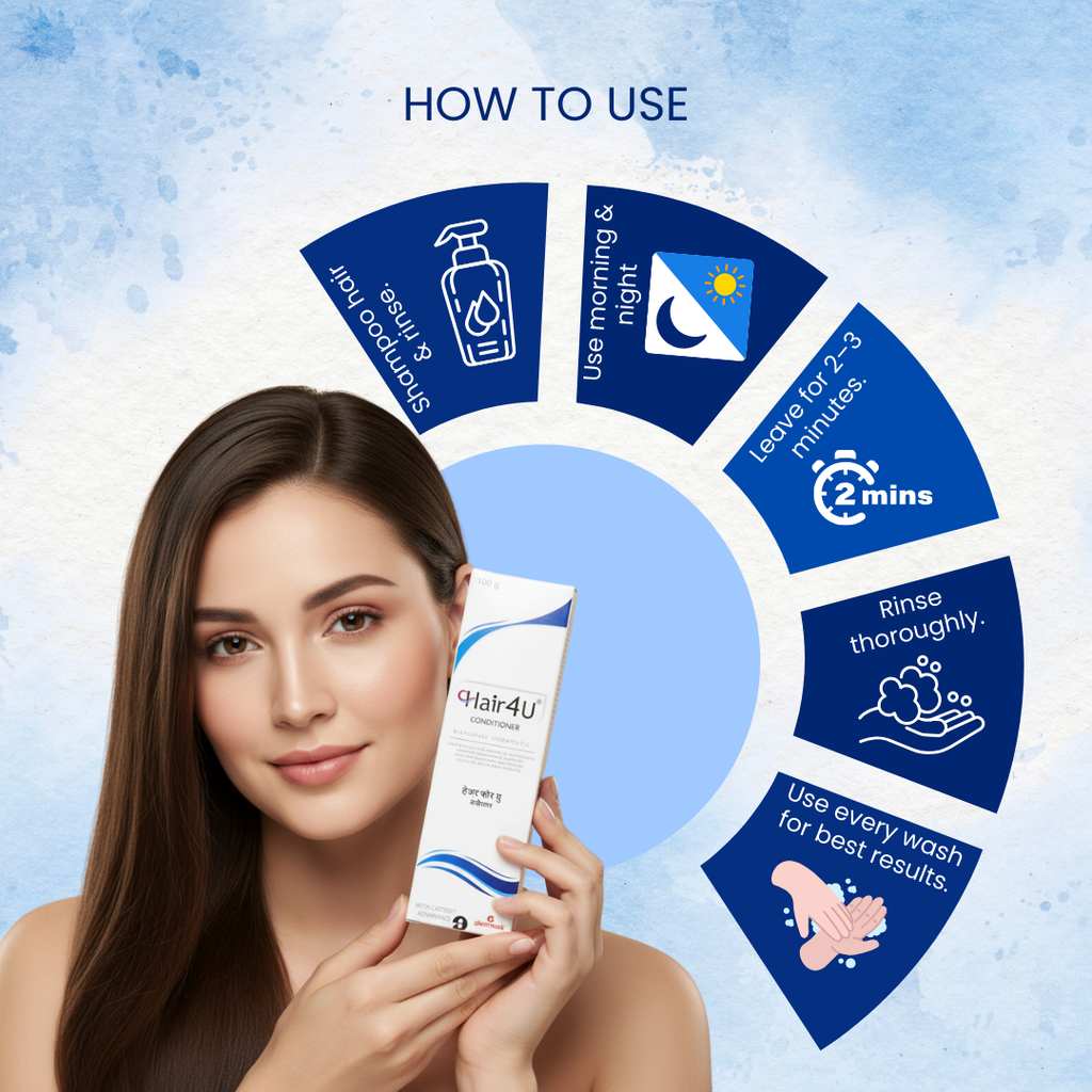 Hair 4U Conditioner is a nourishing, dermatologist-trusted formula designed to strengthen hair strands, reduce breakage, and improve overall hair texture. Enriched with conditioning agents and essential nutrients, it helps restore softness, smoothness, and natural shine to dry, weak, and damaged hair.