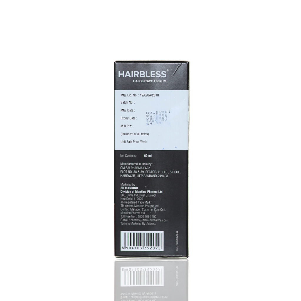 Hairbless Hair Growth Serum is a targeted hair care solution designed to support hair regrowth, reduce hair fall, and improve overall scalp health. Its advanced formulation works directly on the hair roots to strengthen follicles, improve blood circulation to the scalp, and promote thicker, healthier-looking hair.
