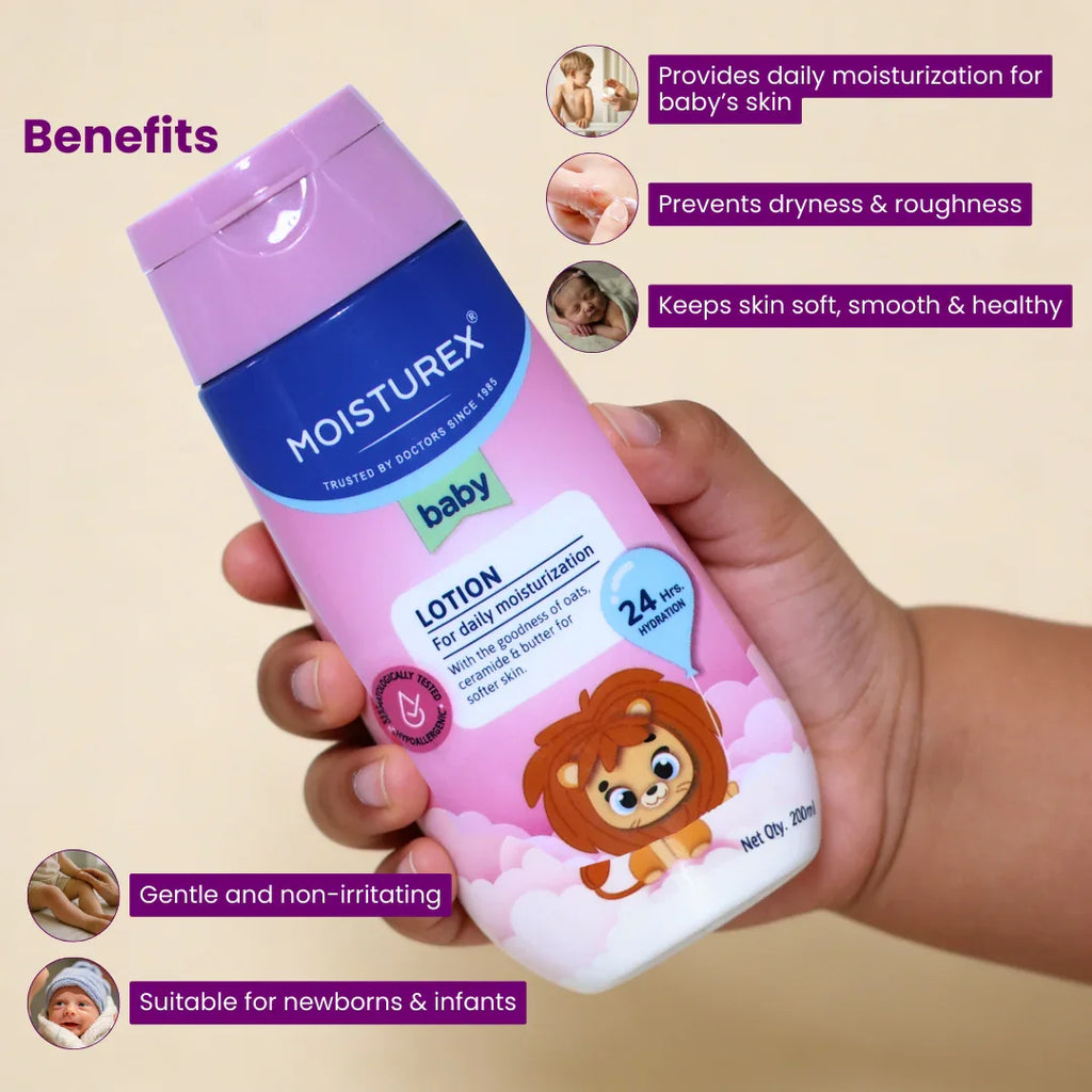 Moisturex Baby Daily Moisturizing Lotion is carefully developed to meet the daily skincare needs of babies with delicate and sensitive skin. It provides balanced moisturization that helps protect against dryness, flakiness, and environmental stress without irritating the skin.