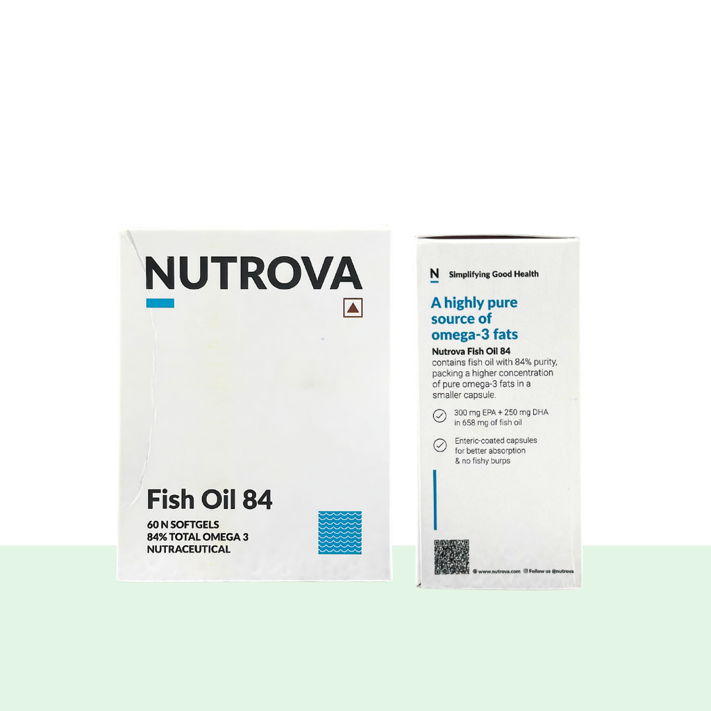 Nutrova Fish Oil 84 is a premium-grade Omega-3 supplement formulated with 84% pure EPA and DHA, offering one of the highest potencies available in fish oil. Sourced from wild, deep-sea fish, this supplement delivers exceptional purity, ensuring maximum absorption and effectiveness.