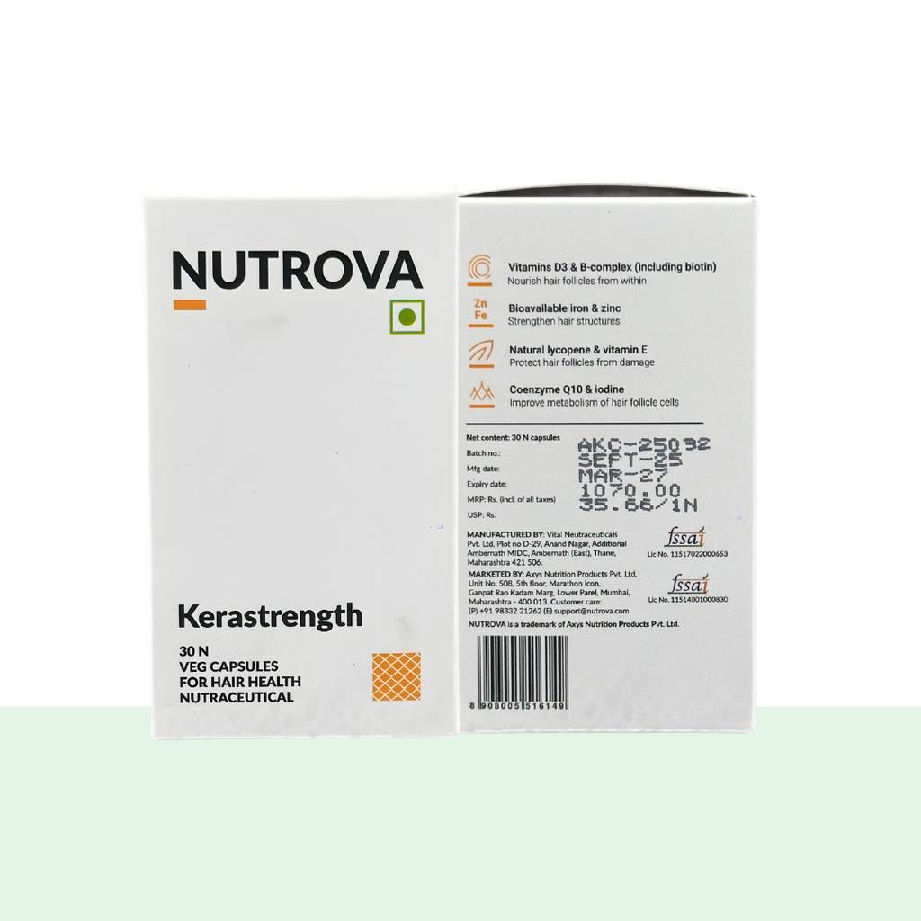 Nutrova Kerastrength is ideal for anyone experiencing hair fall, thinning, or dullness and looking for a long-term nutritional solution for healthier hair.