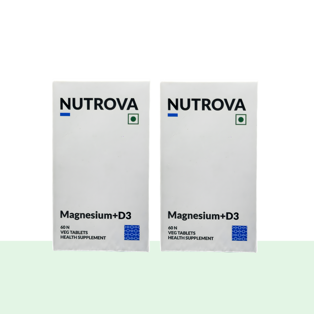 Nutrova Magnesium+D3 is a premium nutritional supplement thoughtfully crafted to help you maintain optimal bone, muscle, and nerve health. It combines Magnesium, a vital mineral involved in over 300 enzymatic reactions in the body, with Vitamin D3, which enhances calcium absorption and promotes strong, healthy bones.