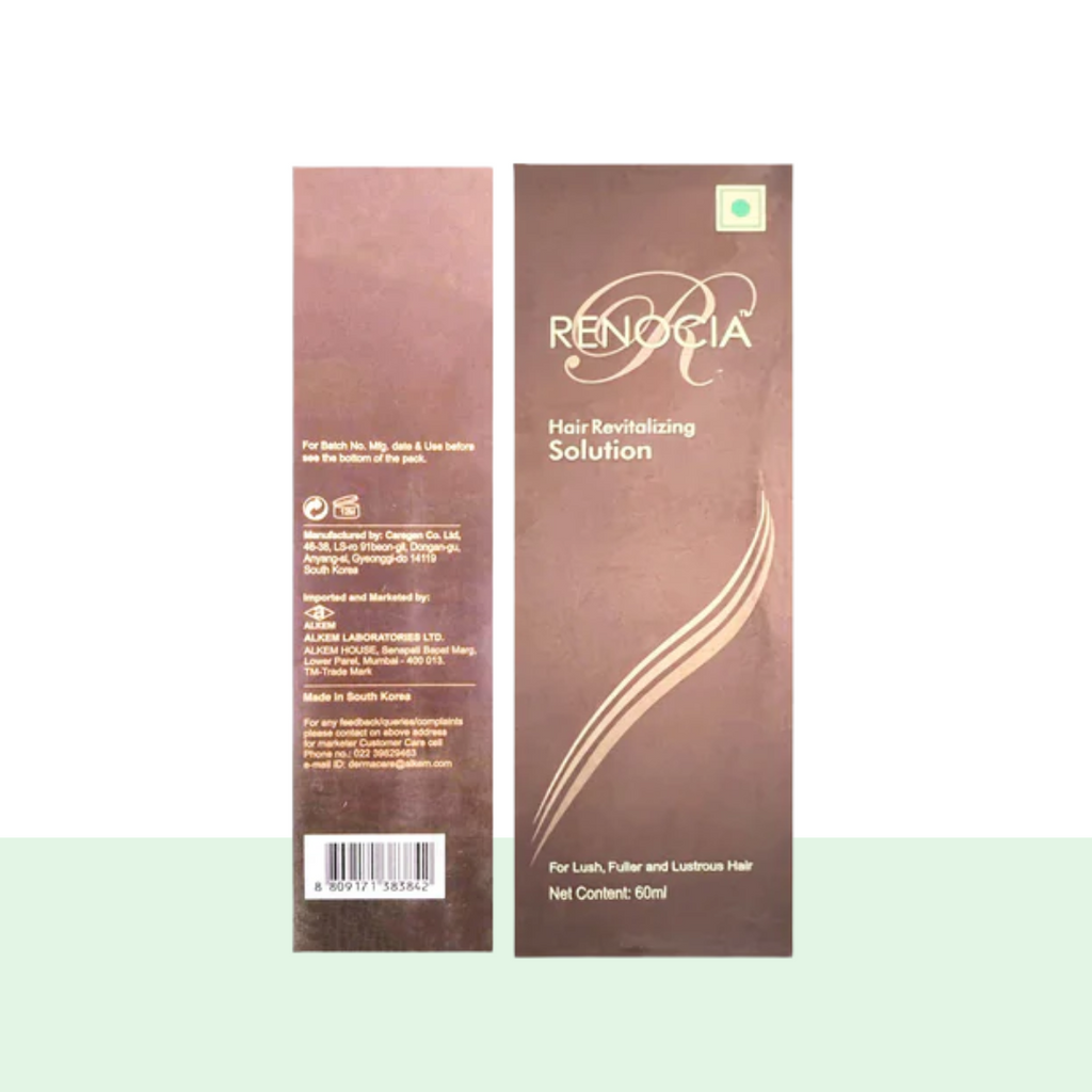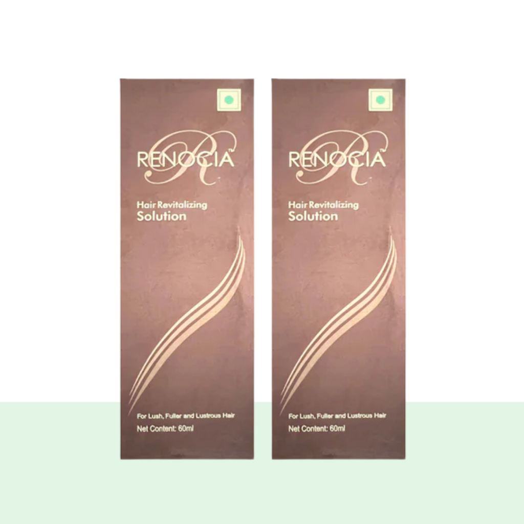 Renocia Hair Revitalizing Solution 60 ml is a dermatologically tested formula designed to reduce hair fall, strengthen weak strands, and promote healthier hair growth. Enriched with botanical extracts, peptides, and vitamins, it deeply nourishes the scalp, improves blood circulation, and helps restore natural shine and volume.