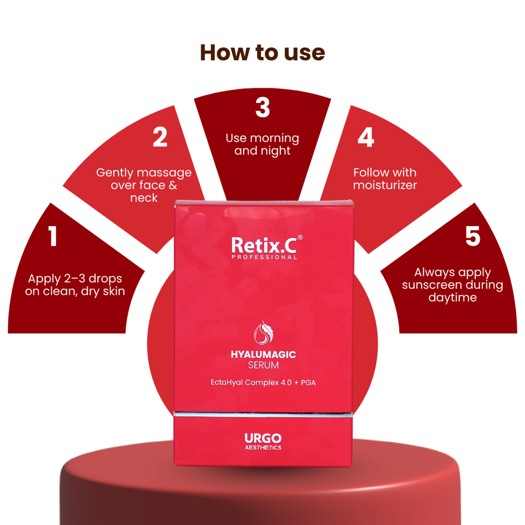 RETIX.C Hyalumagic Serum is a dermatologist-formulated serum designed to provide intense hydration, plumpness, and skin revitalization. Enriched with hyaluronic acid, antioxidants, and nourishing ingredients, it helps restore moisture balance, reduce fine lines, and improve skin elasticity.