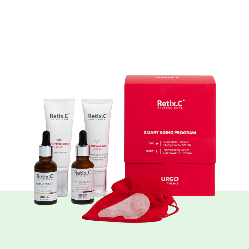 RETIX.C Smart Aging Program is a professional-grade skincare regimen designed to target visible signs of aging, restore skin vitality, and improve overall texture. Powered by retinol, antioxidants, peptides, and growth factors, this program works synergistically to reduce wrinkles, boost collagen, and enhance skin firmness.