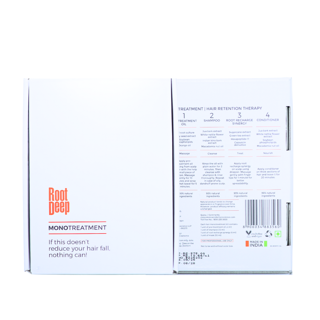 Root Deep Monotreatment is an advanced scalp therapy designed to purify, energize, and strengthen your hair from the roots. Infused with botanical actives, peptides, and anti-inflammatory agents, this intensive treatment targets the root cause of hair thinning, sluggish follicles, and scalp buildup. Ideal for men and women experiencing hair fall, early signs of alopecia, or unhealthy scalp conditions.