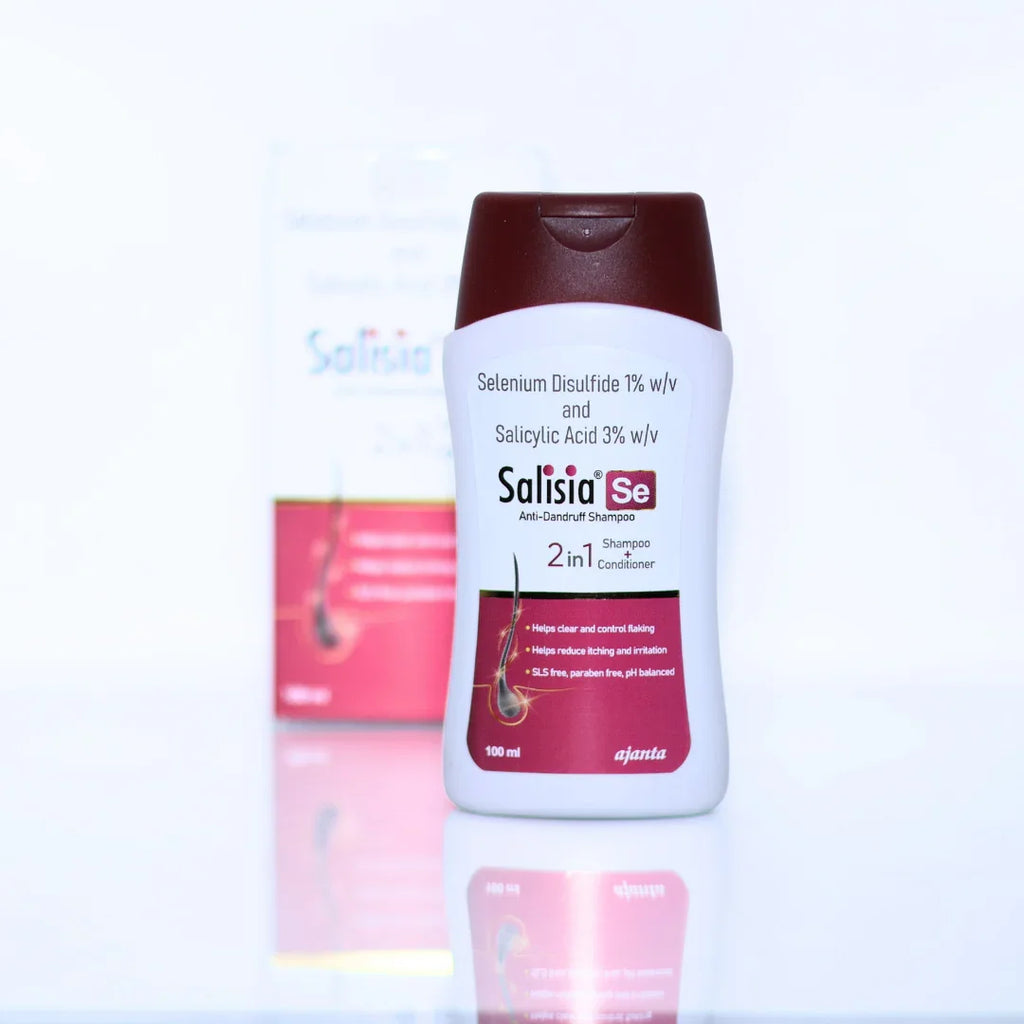 Salisia Se Shampoo 100 ml is a dermatologist-recommended medicated shampoo formulated to manage dandruff, scalp flaking, and associated itching. It works by cleansing the scalp thoroughly while helping control the factors that lead to dandruff recurrence.