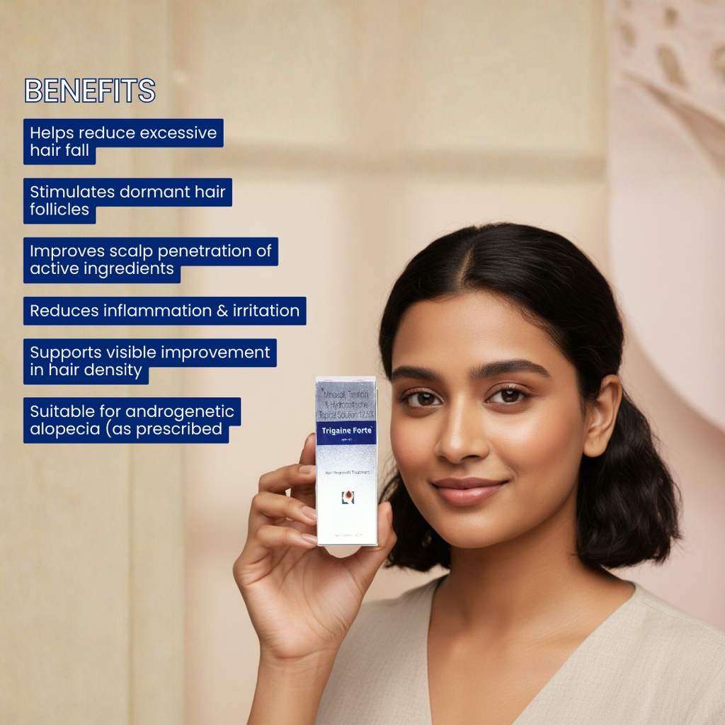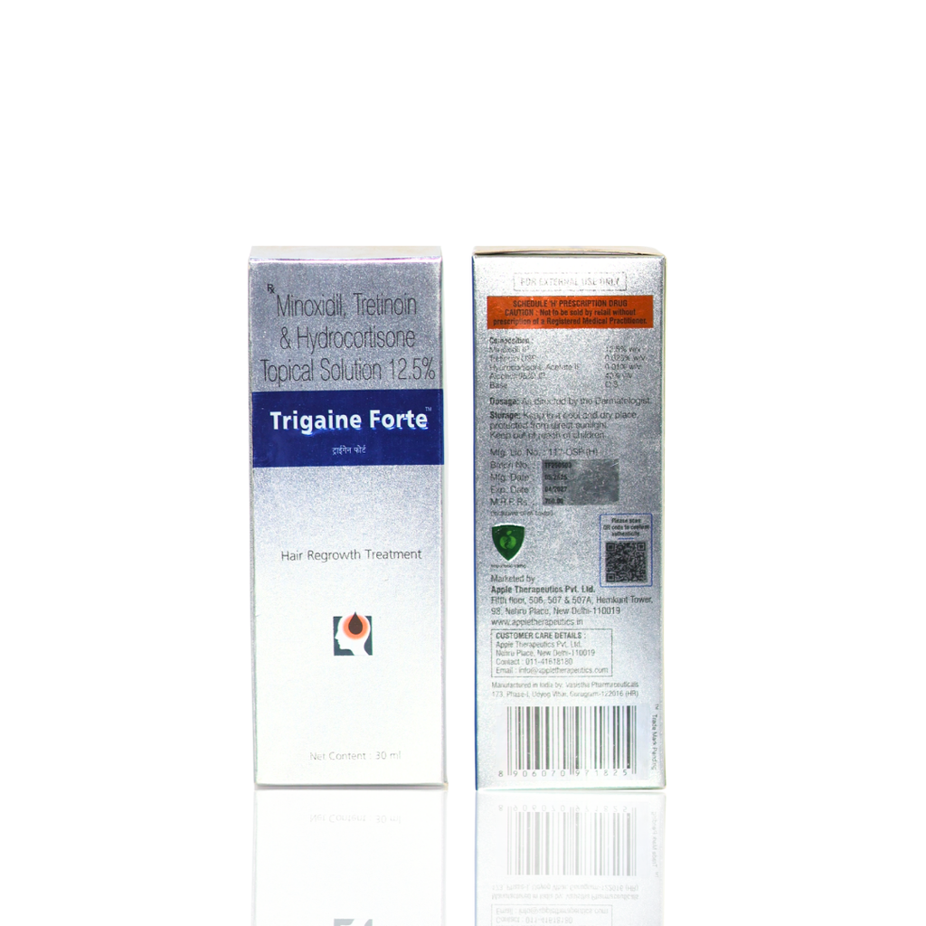 Trigaine Forte Topical Solution is an advanced hair restoration formula enriched with a powerful combination of Minoxidil 5%, Aminexil, and Adenosine. This dermatologist-recommended solution helps combat androgenetic alopecia (pattern baldness), reduce excessive hair fall, and stimulate new hair growth.