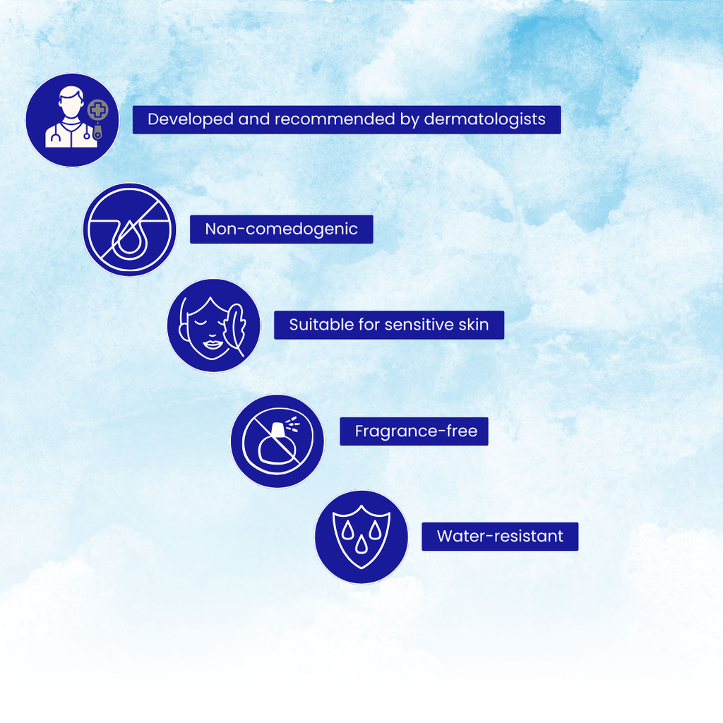 Apply generously to face and neck 15–20 minutes before sun exposure. Reapply every 2–3 hours or after swimming/sweating.