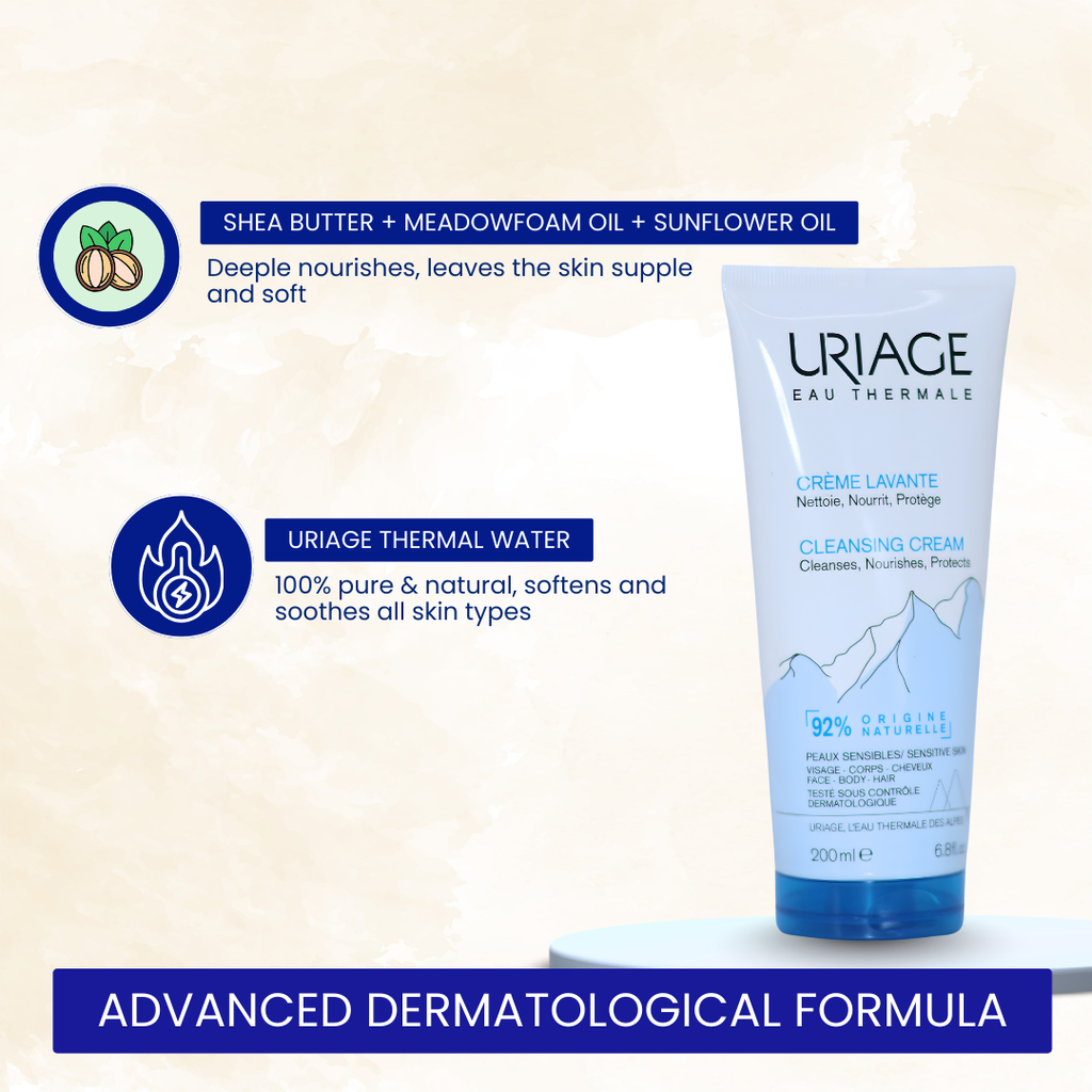 Uriage Creme Lavante Cleansing Cream is a soap-free, gentle cleanser designed for daily hygiene of dry, sensitive, and delicate skin. Enriched with Uriage Thermal Water, it helps cleanse the skin effectively while maintaining natural moisture and protecting the skin barrier.