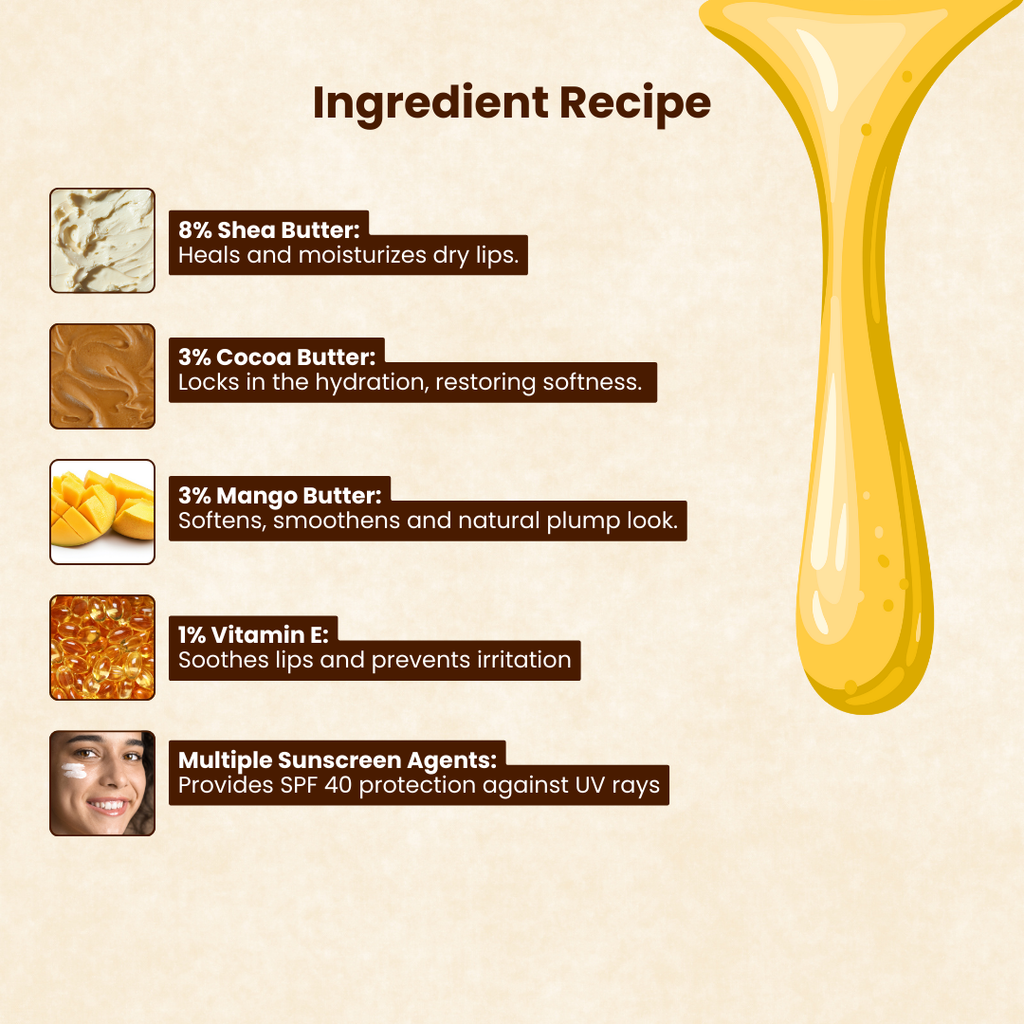 Its broad-spectrum SPF 40 shields lips from harmful UVA and UVB rays, preventing sunburn and premature aging. Lightweight and non-sticky, it can be used daily and doubles as a smooth base under lip makeup.