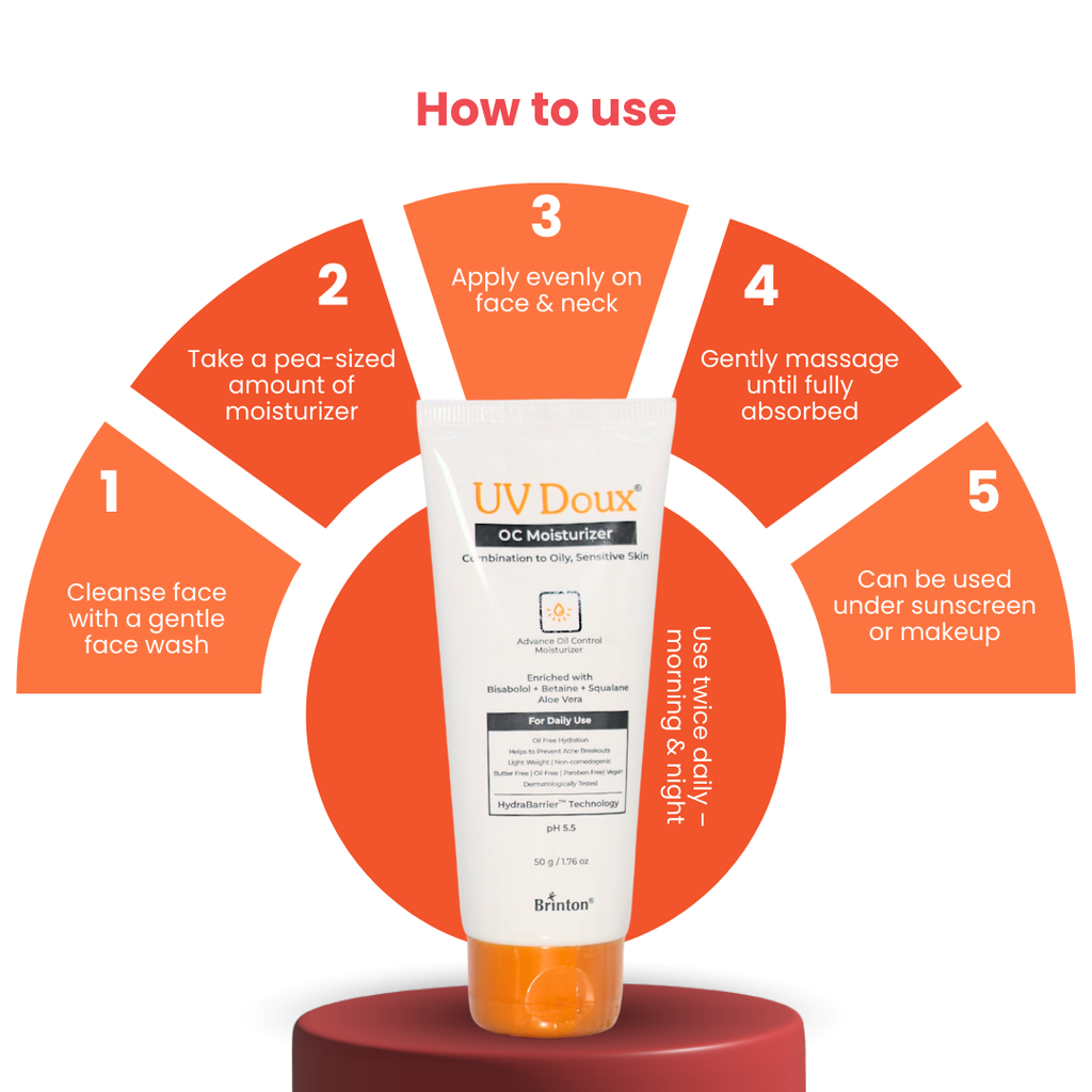 Regular use of UV Doux OC Moisturizer helps maintain hydrated, balanced, and shine-free skin while supporting overall skin comfort.