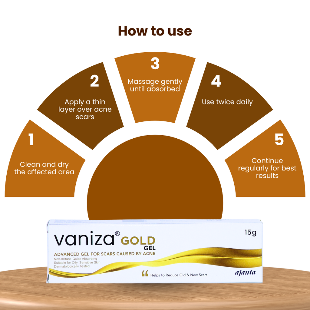 Whether you’re dealing with old marks or recent blemishes, Vaniza Gold Gel penetrates deeply to hydrate, heal, and revitalize the skin — leaving it smoother and visibly clearer over time.